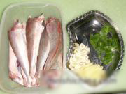鱼洗净去鳞、内脏、头。葱姜蒜切好。