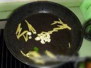 放入一部分蒜片煸香。