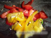 红 黄椒洗净掰成小块。