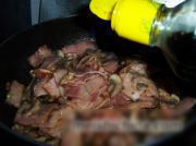 把培根改刀,切成片。