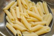 煮好的通心粉,过凉水沥干水分,滴些橄榄油,伴匀备用。