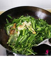 倒入韭菜翻炒二分钟。