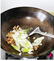 油锅里炒香葱、蛤肉后。