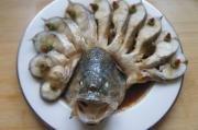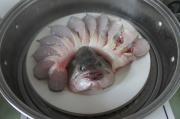 上蒸锅蒸8分钟(小点鱼的6分钟就可以了),关火后2分钟再掀盖取出(此为虚蒸)倒掉多余汤汁。