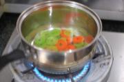 将切好的莴笋和胡萝卜过沸水中焯一下。