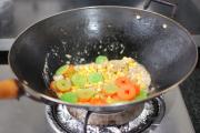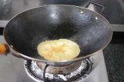 锅里放入油,将捣碎的咸蛋黄放入锅中炒,注意一定要小火!加入几滴料酒(去蛋腥味)再加入少许水,千万不可多放!(加水的目的是蛋黄较干,稀释一下)。蛋黄已经有咸味了,加入少许盐和鸡精,炒到起泡泡。