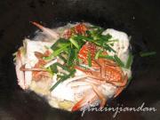 螃蟹熟透后,加入葱段。