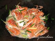 然后下螃蟹翻炒。