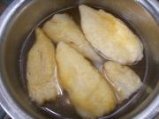 锅里放大半碗油,把鱼肚放进锅里,开小火保持温油泡花胶。