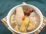 锅里放清水和姜片,加入桂圆,红枣,枸杞烧开后放入鸡块和一汤勺米酒。大火烧开10分钟后,转小火煲1.5-2小时。