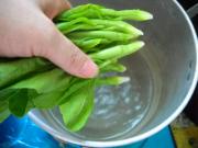 菜心入开水中焯一下。