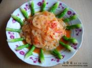 锅中油烧热,爆香蒜末,勾薄芡。