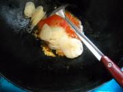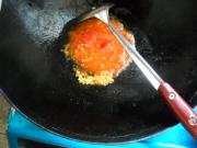 锅中油烧热,爆香姜末,下入西红柿翻炒出汁。