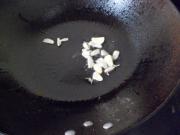 锅烧热,倒入一茶匙的油,放入蒜片炒香。