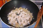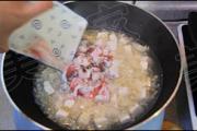 放入切好的豆腐丁。