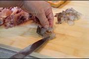 把虾仁剥好,从虾背上切开,顺便去掉虾线;小墨鱼切成细条。