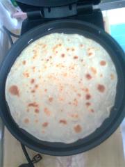 电饼铛刷少量油,倒入面糊,摊平,翻个,饼烙好了。