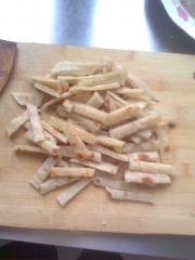 把饼切成5cm*1.5cm左右的小长条,嘿。