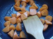 锅置火上少许油煸炒胡萝卜、土豆。