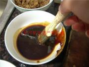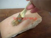 再用老抽刷于肉皮表面反复涂抹。直到上色均匀。