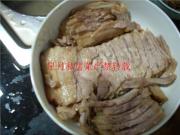 锅中下菜油500克《实际消耗25克》7成热下五花肉炸制。知道表皮呈金黄色,将肉捞起。注意事项;最好用锅铲垫在下面这样才不容易粘锅。