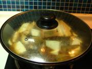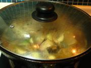 再把调好的豆瓣酱倒入锅中,加醋,酱油,葱姜蒜,糖,白酒,适量的水炒匀,大火烧开。