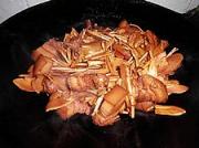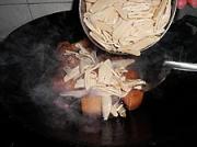大火烧开后,放入水笋(因为这水笋是自己干笋泡发的,要早点放入)。