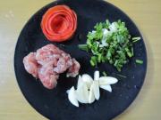 茄子、肉末、小葱、大蒜备用。