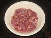 将猪面肉用生抽,油烧腌一会儿。