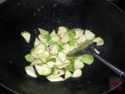 锅里加点油,下西葫芦炒至断青。