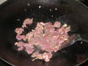起油锅,爆香蒜头,下猪面肉炒至变色。