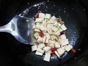 放入豆腐干炒至变色.