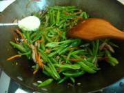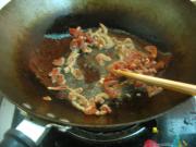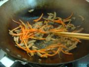 锅中热油,下入腌好的肉丝,用筷子快速划散。