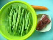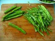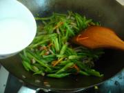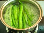 锅中水烧开,将芸豆整条焯下水,加些油和盐,保持翠绿色。