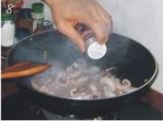 把之前炒章鱼的汁水倒入荷兰豆内。