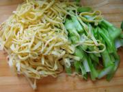 菜薹切片,豆腐皮切丝。