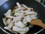 鱼丸片入锅煸炒。