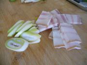 大葱切片,腊肉切片。