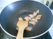 起油锅,放入腊肉片煸炒出其中的油。