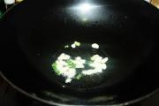 热锅放油,爆香蒜葱粒。