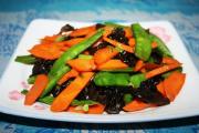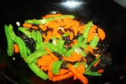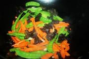 炒至8成熟后再放入泡好的木耳,炒匀。