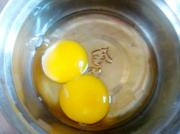 将鸡蛋磕到碗里,搅打均匀。