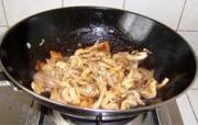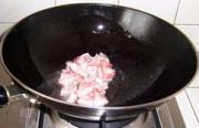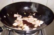 炒锅中放油,下葱姜末爆香,放入五花肉煸炒至变白。