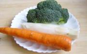 准备西兰花、胡萝卜清洗干净。