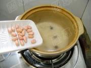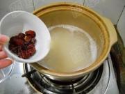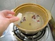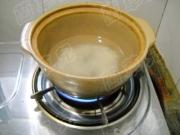 大米洗净,倒入沙煲,加入适量冷水;大火煮开。