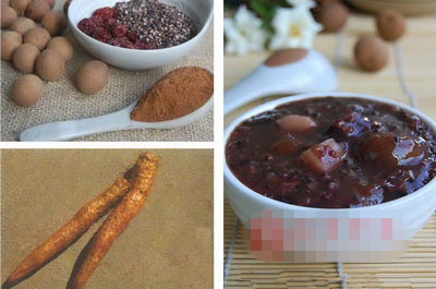 “紫米、桂圆和红枣是大家都知道的补血好咚咚,再加上营养价值很高的山药,益气养血的功效更显著~~”