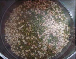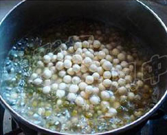 将绿豆和薏米一起下锅慢煮,快熟时放入芡实。
