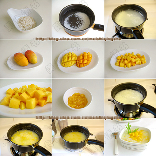 3、待粥煮好后放入芒果泥和一部分芒果丁,搅拌均匀后再加入适量冰糖调味,再煮制5分钟左右就可以关火了。把粥放到一边晾凉,喜欢冰的可以放入冰箱,喝的时候再撒入剩余的芒果丁点缀即可。时间: