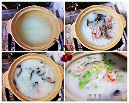 1. 取砂锅,添大半锅水,烧开后,放入冷藏后的白米,盖盖子煮15分钟。