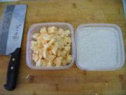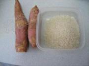 地瓜去皮切丁,大米淘洗干净,用水泡一小会儿。
